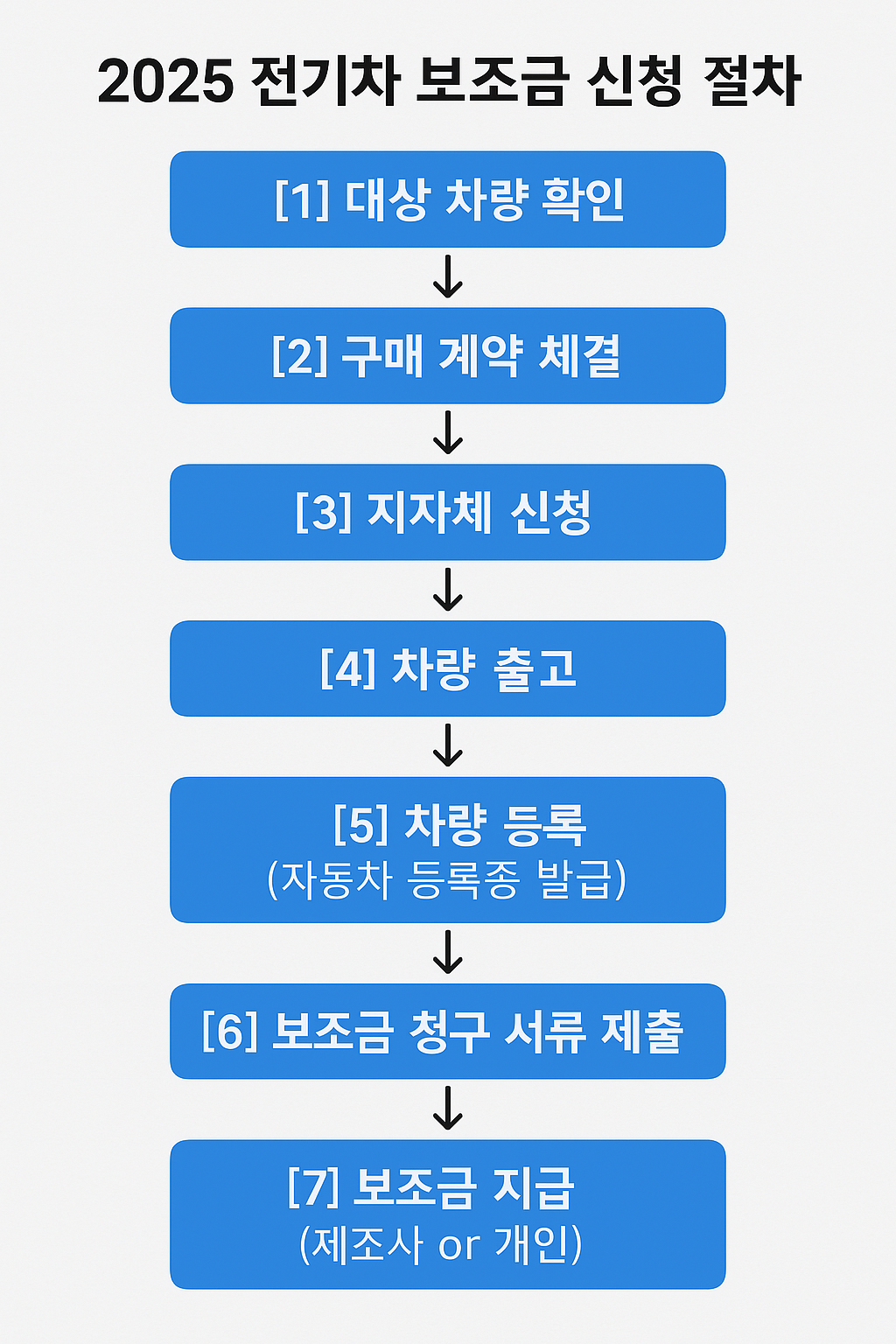 🚘 전기차 보조금은 “사전 확인 → 신청 → 출고 → 등록 → 보조금 청구”의 흐름으로 진행됩니다.